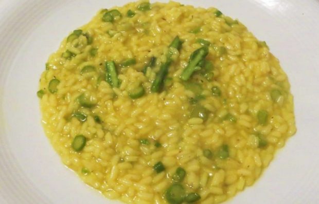 394 risotto asparagi e zafferanoper chi vuole anche vegano. Dividete le punte di asparagi dai gambi con un taglio netto. A fine cottura spegnete la fiamma e mantecate il risotto aggiungete burro e parmigiano. Primo facile a base di verdure duration.